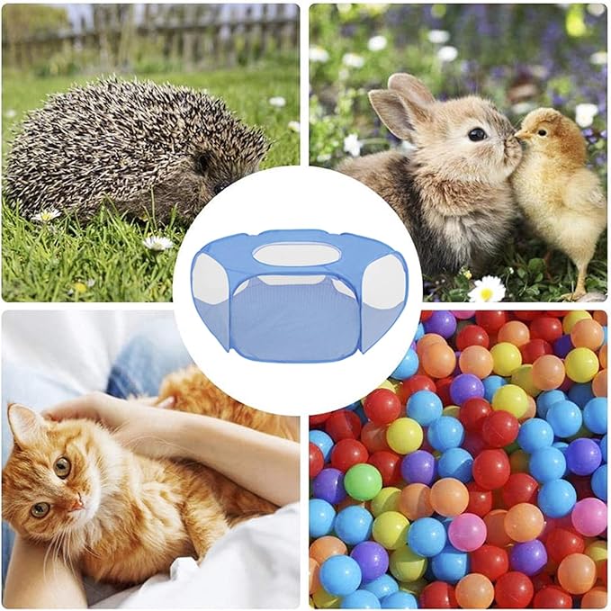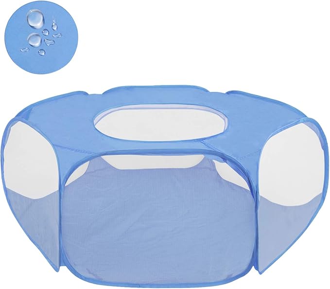 - 【Transparent & Breathable】Pet playpen is surrounded by transprant mesh nets,breathable,little animals can be seen clearly in this cage and observe them movement situation,suitable for indoor or outdoor travel for small pets.