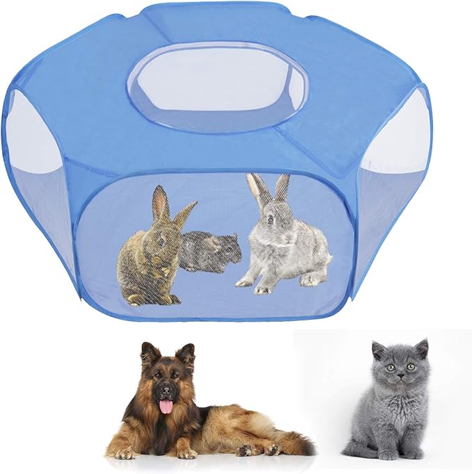 Portable Pet Tent Small Animal Pet Playpen Breathable Transparent Pet Tent with Zipper Top Cover Indoor Outdoor Foldable Cage Exercise Yard Fence for Kitten Puppy Guinea Pig Small Dogs Cats