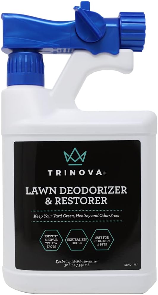 TriNova Outdoor Lawn Deodorizer & Restorer - Eliminates Dog, Puppy Feces and Urine Odors from Lawn, Yard, & Patio, Artificial Turf - Dog Urine Neutralizer for Lawns, Repairs & Prevents Yellow Spots