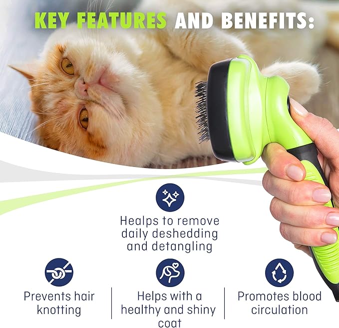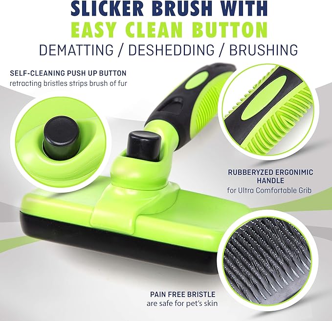 - Self cleaning slicker brush for dogs, cats & pets - Take the hassle out of grooming your pet at home with this incredible self cleaning slicker brush! Our superior quality slicker dog brush and cat brush makes it super easy to detangle and groom your pet's fur, then lets you to clean the brush in seconds!