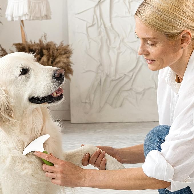 The pet grooming brush works wonders on my golden retriever’s thick coat. It removes loose fur effortlessly and my dog actually enjoys being brushed now.