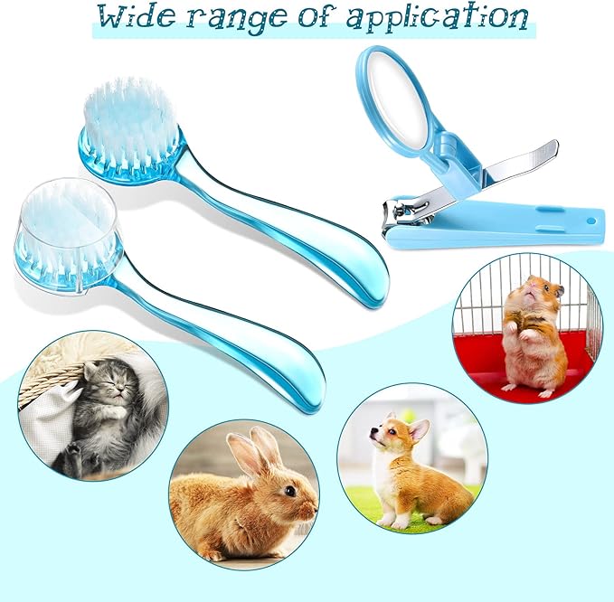 - You will get: 2 pieces soft bathing brush in blue and a nail clipper with magnifer in blue, nice quantity tool to keep your pet clean