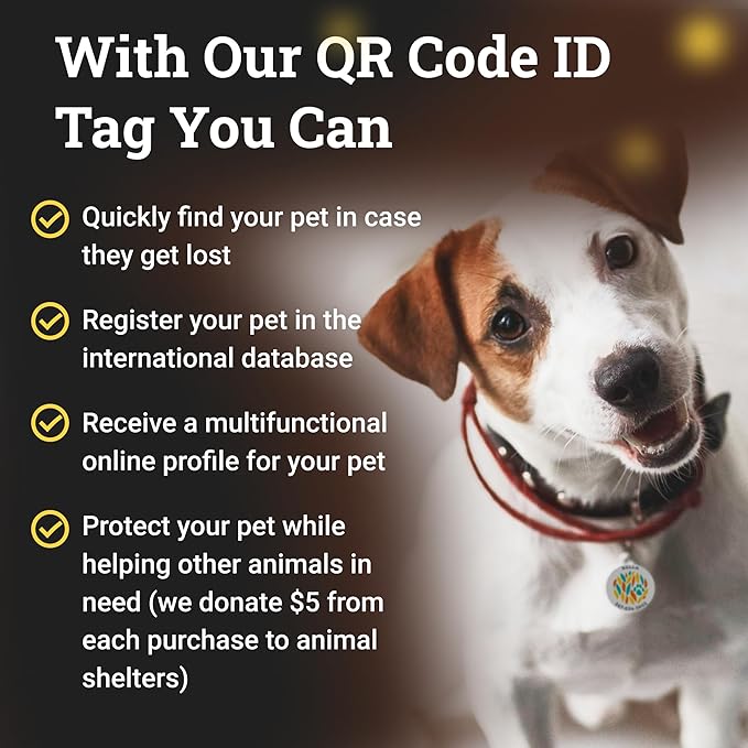 - [WORLDWIDE]: The id tag works worldwide.The QR code facilitates registration in the international animal database, which is in sync with the European Association of Animal Databases - Europetnet. Your pet's profile immediately syncs with the largest International Animal Search Engines. This code identifies the pet and grants access to its comprehensive online profile with all pertinent information.