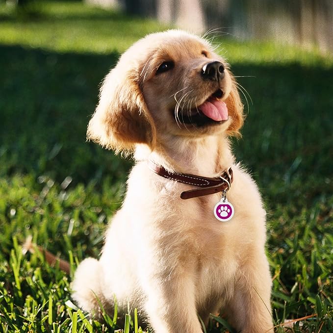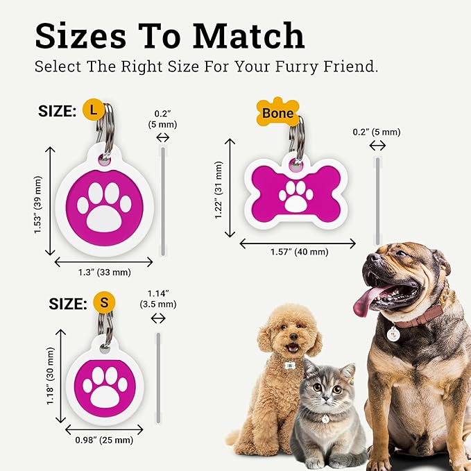 QR Code Dog Tag Silent Id Pet Tags Personalized Name Plate with Online Profile (Large, Pink Paw)