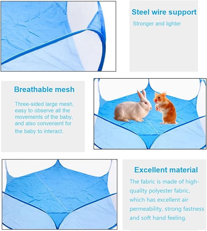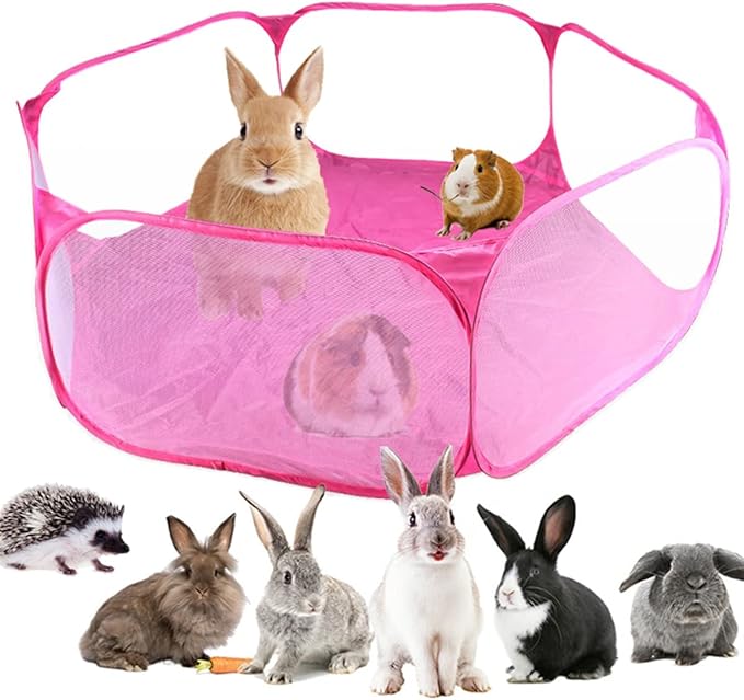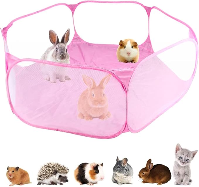 Small Animal Cage Tent Breathable & Transparent Pet Playpen Pop Open Outdoor/Indoor Exercise Fence, Portable Yard Fence for Guinea Pig, Rabbits, Hamster, Chinchillas and Hedgehogs (Low barriers)