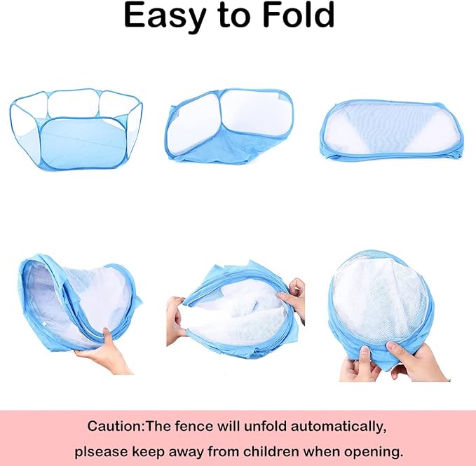 - ②【Size Lightweight & Portable】Dimensions: Expanded width and height 47" x 15" (120cm x 38cm), 10 square feet. Foldable into a round shape, 9.4" x 9.4"(24cm x 24cm), Suitable for both outdoor and indoor, easy to carry. So you don't need to carry a huge cage when you go out.