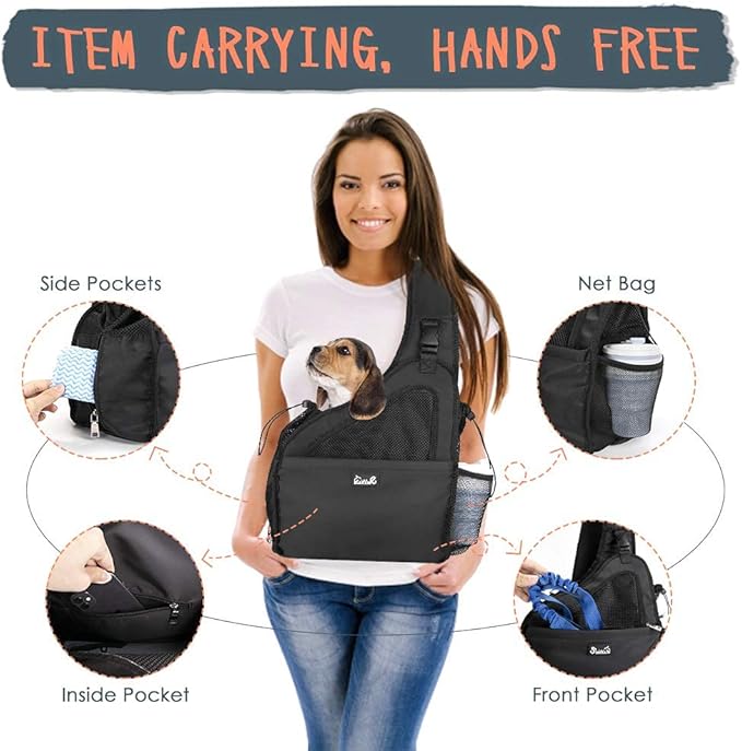 Lukovee Dog Slings for Small Dogs, Hard Bottom Support & Adjustable Soft Padded Shoudler Strap Dog Sling Carrier, Dog Purse with Button Closure & Zipper Pockets (for Pets up to 6 lbs, Black)