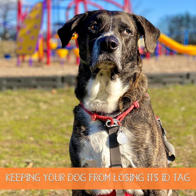 - Wide applications: the dog collar clips and rings fit most medium to large size dogs and adult cats; Pet ID tag clips can be firmly attached to dog collars, suitable for dog rolling, running, jumping or fetching, the ID tag will always remain securely in place