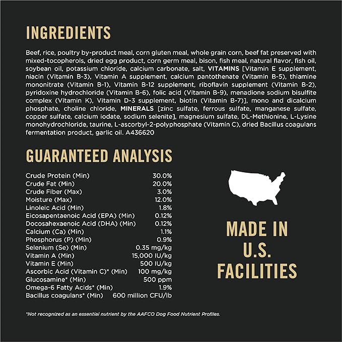 - High-quality dry dog food formulated with real beef as the number one ingredient and bison