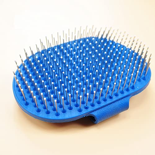 Pet Rubber Grooming Brush Bath Brush Massager with Adjustable Loop Handle Stainless Steel Pin, Random Color