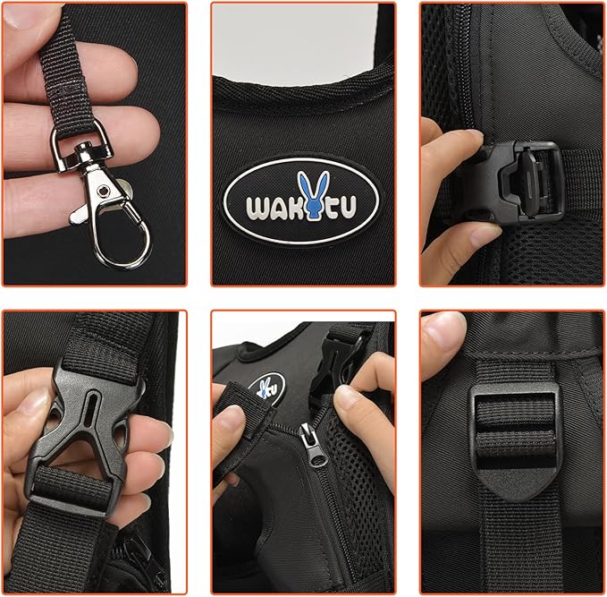 - 🐕【UNIQUE DESIGN】: ① Back mesh back pad, heat dissipation and ventilation when carrying. ②Adjustable wider and thicker padded straps, maximum length 39.6 inches, long time carrying without strangling shoulders. ③ Waist fixed belt, keep the back of the pet does not shake, more stable. ④Back built-in PP board, not easy to deformation collapse.