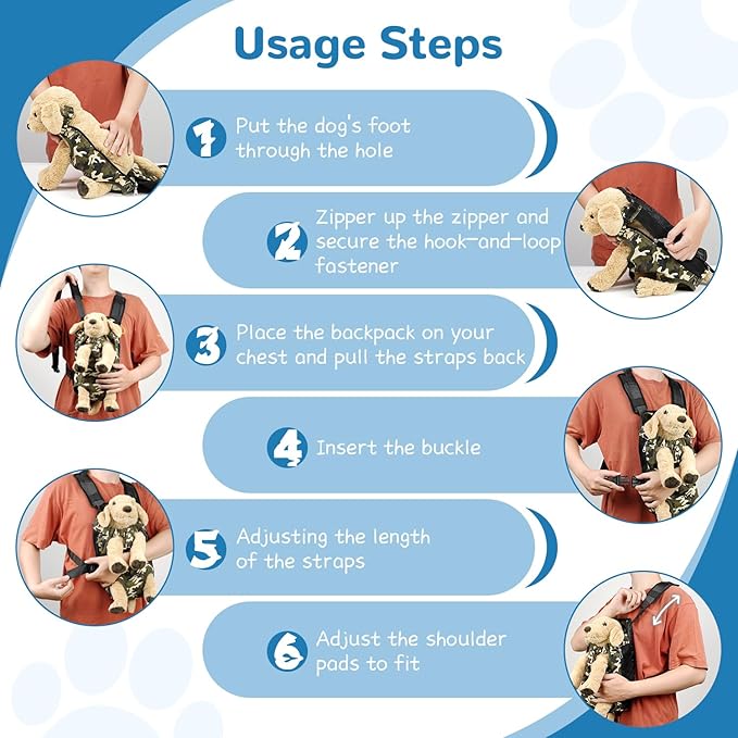 - 3 Sizes Available for Your Beloved Pet: The suggested weight for the dog front backpack is for reference only. If your dog's body length requires size S but the girth requires size M, please choose size M. Additionally, leave at least an extra inch to ensure your pet's comfort.