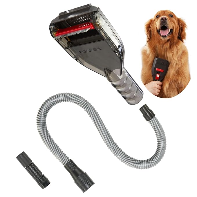 Pet Shedding Brush Vacuum Attachment, Grooming Tool Kit for Most Vacuums, Cat Dog Hair Deshedding Groomer with Extension Hose and Universal Adapters