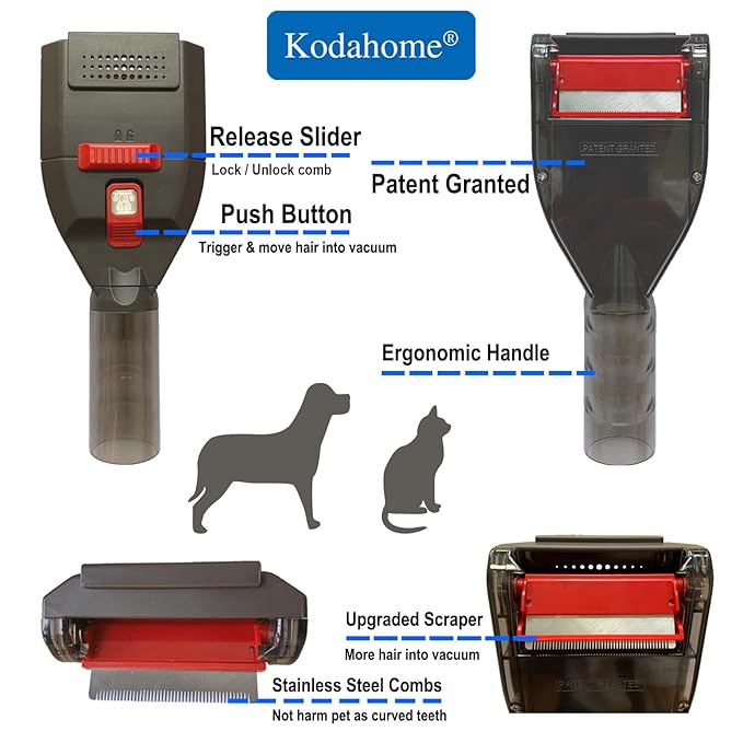 - Easy Use and No Remove Hair with Fingers: One-handed operation to groom and collect the pet loose hair into vacuum automatically (Push the button to flip the comb), No longer need fingers remove it from the comb.