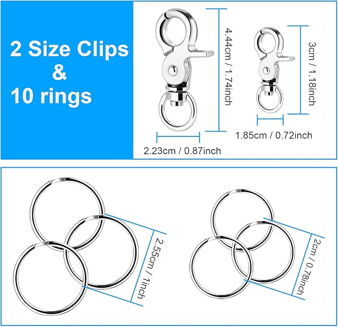 - 【Different Sizes】2 size dog tag clips measure 1.17 inch and 1.78 inch, 10 stainless steel rings are divided into 2 sizes, which is 1 inch in diameter and 0.79 inch in diameter.