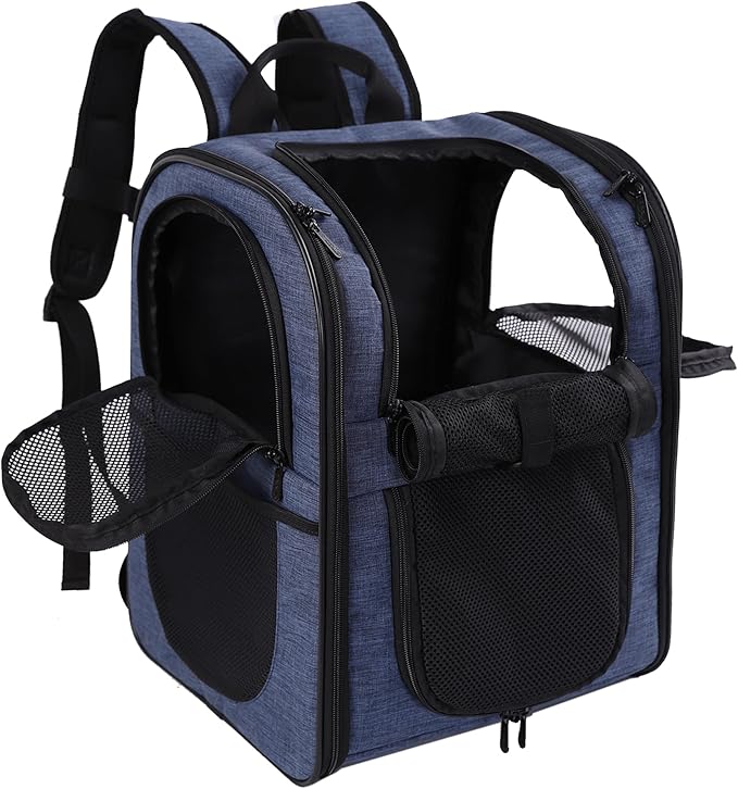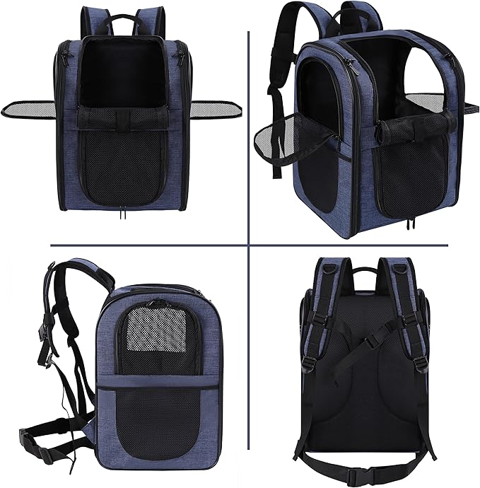 - BETTER CONSTUCTION-Well ventilated design for optimal airflow, two-way entry for easy access, top mesh window for more headroom and visibility, and thick, soft fleece bedding for your pet resting and relaxing. This backpack is firmly structured, providing ample room for your pet to move around.