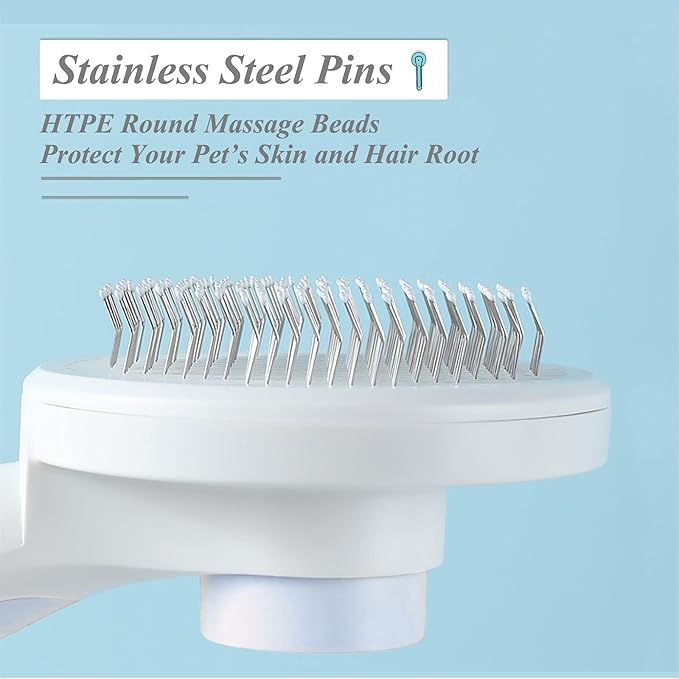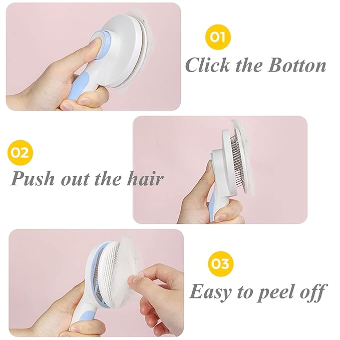 - 😻Easy use and One Button Self Cleaning - Simply press the button on the back after brushing your pets to release all loose hairs from brush. Self Cleaning design makes it easily to push out and peel off all hair for next time. Whole Body waterproof, no worries of dirt and small hair, keep it dry and clean.