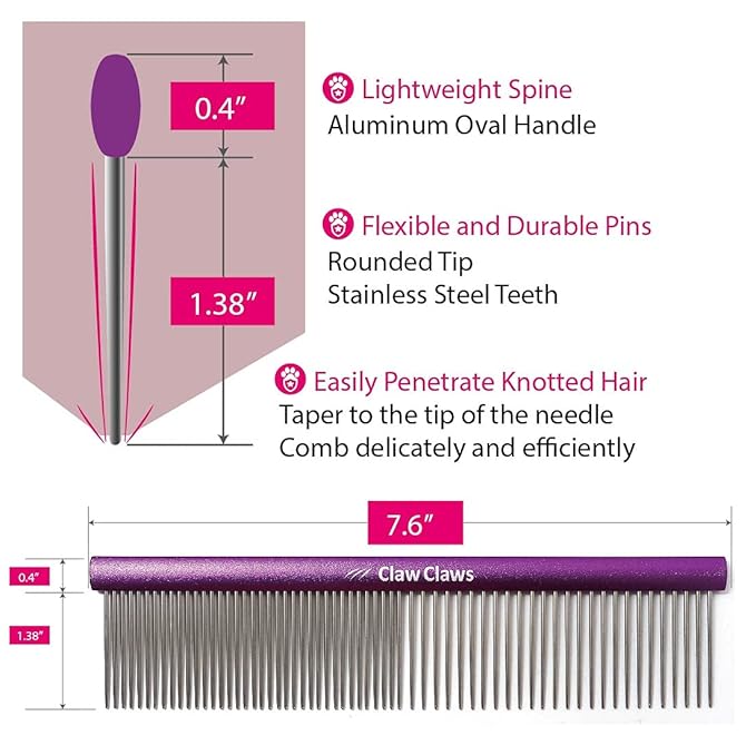 Greyhound Grooming Purple Comb for Dogs and Cats, Removing and Shedding Matted, Tangled Hair, Metal Oval Handle with Stainless Steel Pins