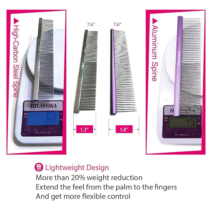 - 【Antirust Materials and Made in Taiwan】- The metal steel comb is sturdy and worth the money. Stainless steel pin and aluminum spine increase duration of service that can let you save time and money to search related grooming combs!