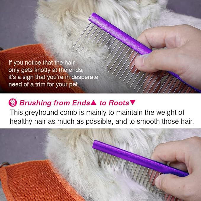 - 【Suitable for All Fluffy Dogs and Cats】- The greyhound comb has two-spaced needles.