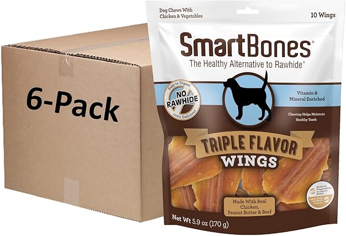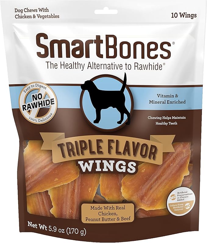 SmartBones No Artificial Colors or Preservatives Rib and Wing Chews, Treat Your Dog to a Fun Shapped Triple Flavor Chew 60 Count (Pack of 1)