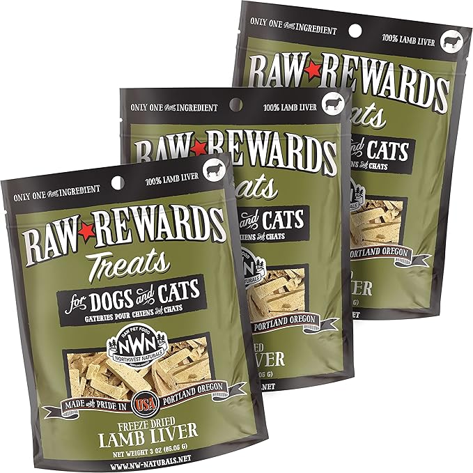 Northwest Naturals Raw Rewards Freeze-Dried Lamb Liver Treats for Dogs and Cats - Bite-Sized Pieces - Healthy, 1 Ingredient, Human Grade Pet Food, All Natural - 3 Oz (Pack of 3)