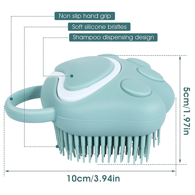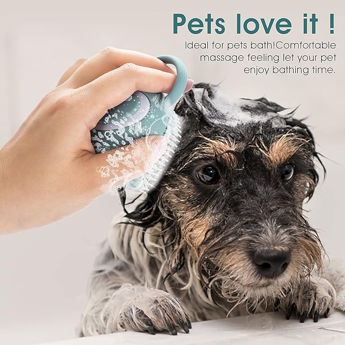 - 【Comfortable Massage Feelings】With shampoo dispensing design, the dog massage brush not only can provide a quick and thorough washing of your pets but also massage the skin to improve blood circulation. This pet brush can give your pet a very comfortable bath experience.