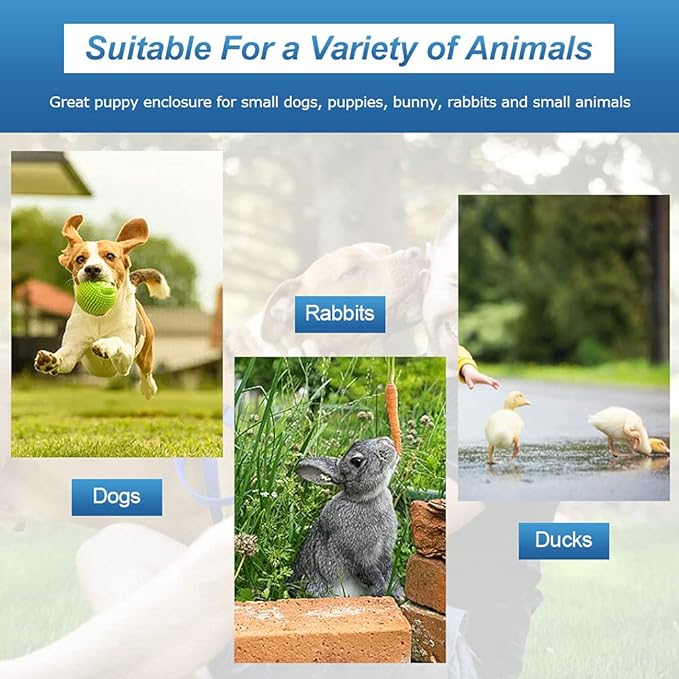 - 🐶🐶【Great for Camping】Our dog playpen no tools required. Once you’re done, the pet playpen quickly collapses for convenient storage. The outdoor dog fence panels can be combined repeatedly using the poles in just minutes.
