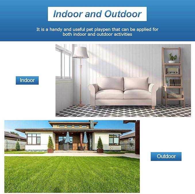 - 🐶🐶【Perfect to Indoor and Outdoor】The dog playpen panels are 32"W x 40"H each, which when assembled provides a large secure play exercise area.The sides of dog playpen are tall enough for a small child to reach into the enclosure.The pet pen is perfect for both indoor and outdoor use.Our pet playpen is your best choice!