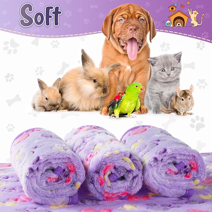 Tatuo 4 Pcs Dog Blanket Pet Puppy Blanket Puppy Teething Toys Paw Print Fleece Blanket for Pet Cat Soft Warm Sleep Mat Guinea Pig Cage Blanket(Small(24 x 16 Inch),Purple)