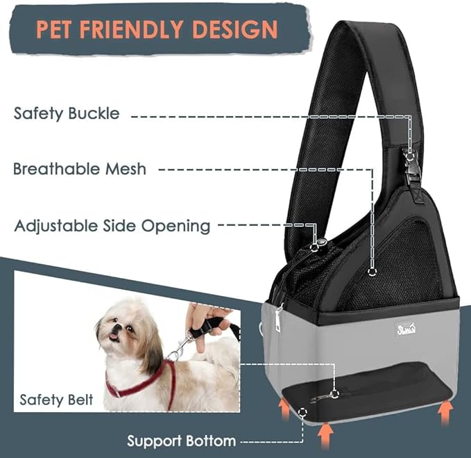 - 【Buckle Closure for Easy Use & Safety Hook】- The sling is easy to use with buckle closures, providing a hassle-free option for taking your pet out. The convenient buckle design allows for easy access in and out of the bag. Moreover, our pet sling carrier includes an adjustable safety hook that prevents your pet from accidentally falling out.