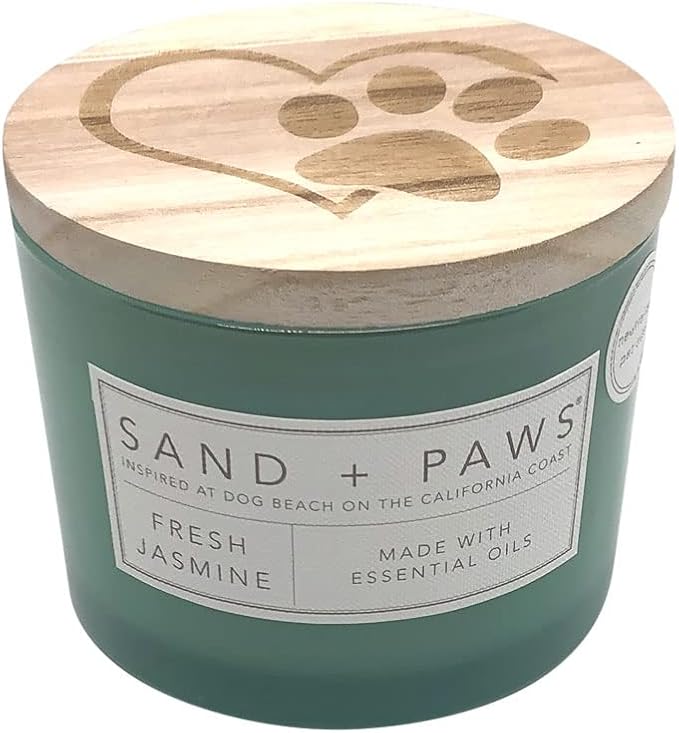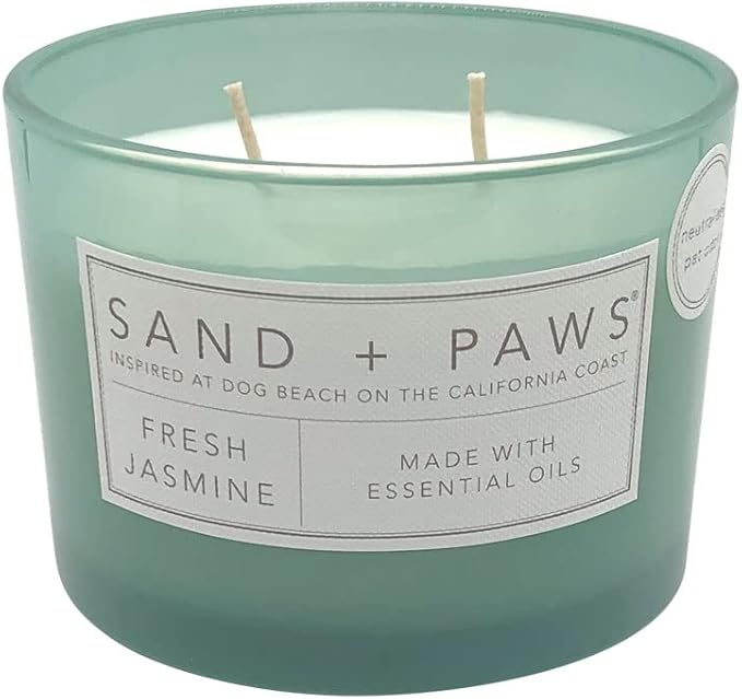 Sand + Paws Scented Candle - Fresh Jasmine - Additional Scents and Sizes –Luxurious Air Freshening Jar Candles Neutralize pet Odors and Enhance Home décor – 100% Cotton Lead-Free Wicks - 12 oz