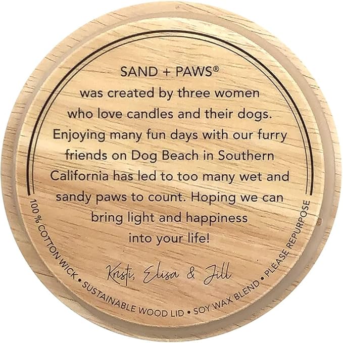 - Sand + Paws was created by three women who love candles and love their dogs. Enjoying many fun days with our furry friends on Dog Beach in Southern California has led to too many wet and sandy paws to count. Bring light and happiness into your life with this Sand + Paws candle with our signature painted and carved wood lid. Our candles neutralize pet odors and other unwanted household and kitchen odors