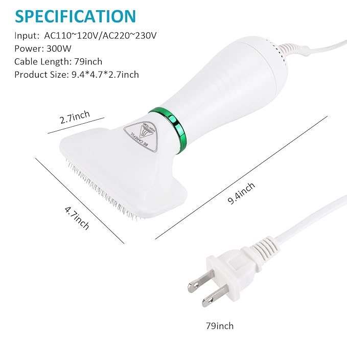 - 【2 in 1 Pet Hair Dryer 】 Our pet grooming dryer is a dryer and slicker brush in one, designed to make drying and grooming easier and more efficient than before. With the power of a dog hair dryer and the functionality of a hair comb brush, you can now dry your pet after bathing while also removing tangles and loose fur to keep your pet's hair soft and neat.