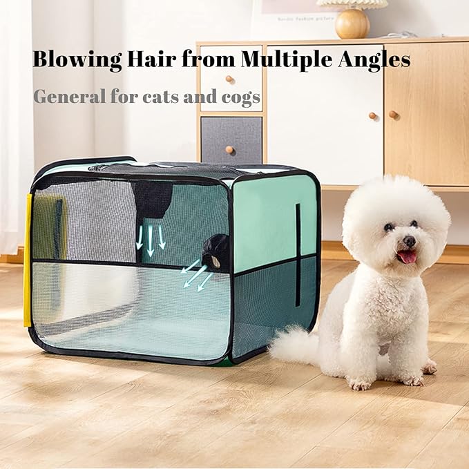 Pet Dog Cat Drying Box | Anti-Hair Flying | Portable Foldable Cat Drying Room | Drying Crate Cage for Small and Medium Dogs (Green)