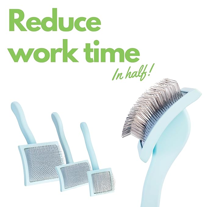 - LESS EFFORT TO IMPROVE GROOMING EFFICIENCY - Used by professional groomers, our fast and efficient dog and cat slicker brush features soft stainless-steel pins that gently brush away loose hair, undercoat, mats, and tangles.