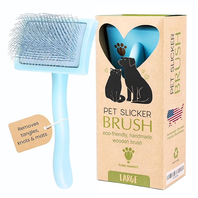 Pet Slicker Brush With Soft Massage Grooming Stainless Steel Pins - For Dematting, Shedding Fur, and Undercoat - Ideal Gift for Professional Pet Groomers - Long Slicker Brush - Flying Pawfect