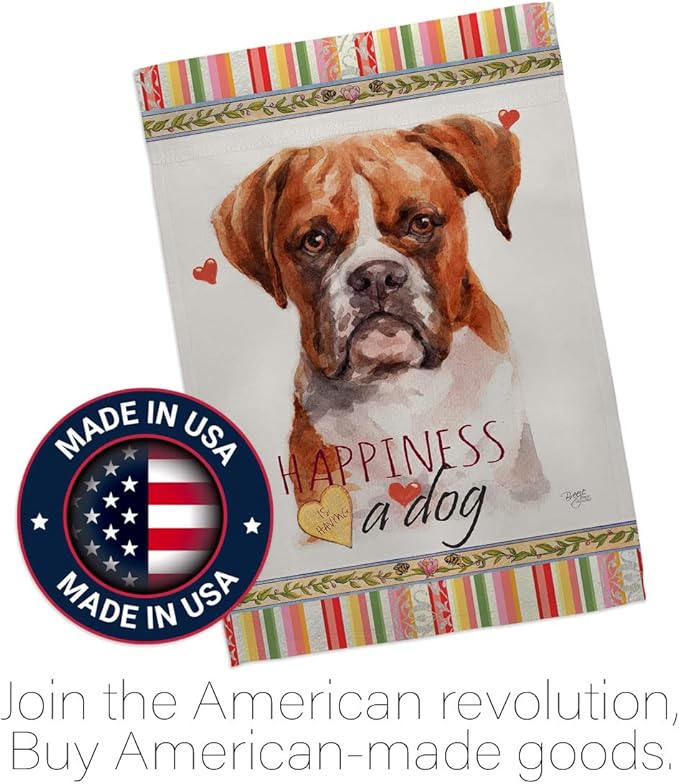 Breeze Decor Boxer Happiness Garden House Flag Kit Dog Puppy Spoiled Paw Canine Fur Pet Nature Farm Animal Creature Decoration Banner Small Yard Gift Double-Sided, Made in USA
