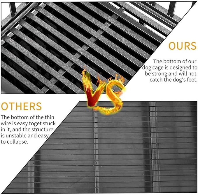 - Spire-triangle&Double door&locking caster design: The spire-triangle roof can broaden the space of the cage. Double door design: The big front door is suitable for pet in and out for you interacting with your dog. 360 degree rotated locking casters can help you to move crate anywhere easily and lock the wheels to keep the crate in place.