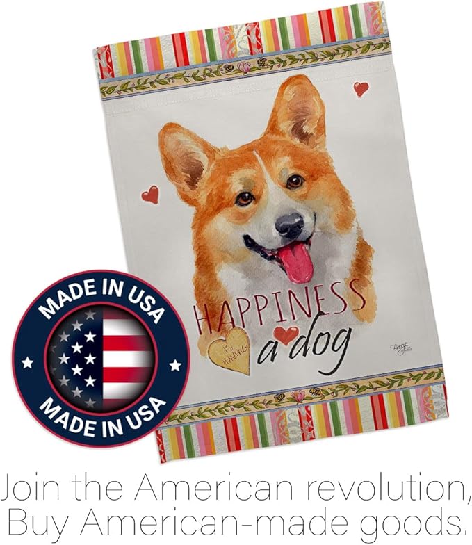 Breeze Decor Fawn Corgi Happiness House Flag Pack Dog Puppy Spoiled Paw Canine Fur Pet Nature Farm Animal Creature Vintage Applique Banner Small Garden Yard Gift Double-Sided, Made in USA