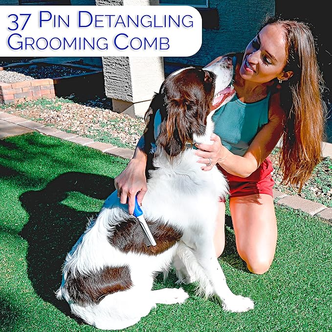 Detangling Dog Comb with Long & Short Stainless Steel Metal Teeth - Dogs, Cats & Small Animals for Removing Matted Fur, Knots & Tangles