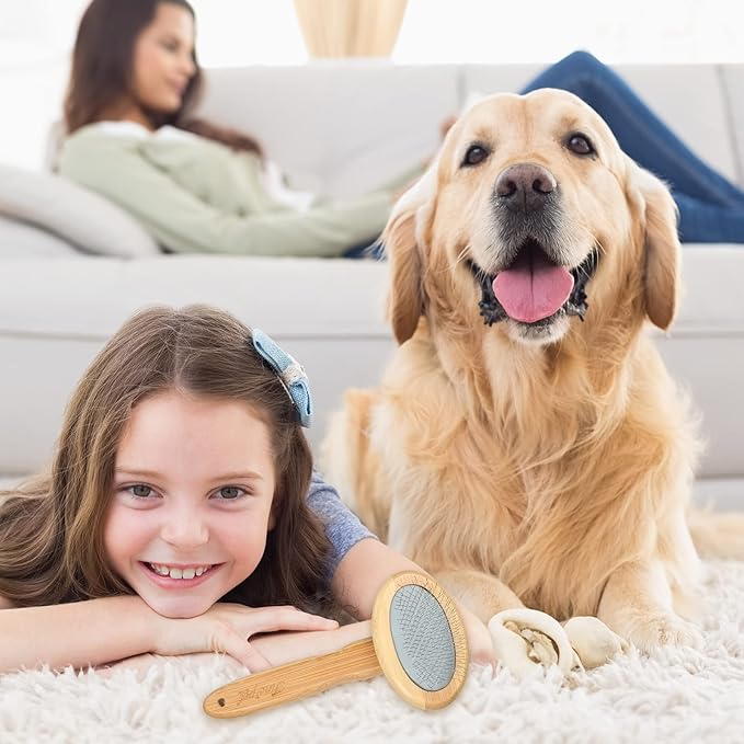 The pet grooming brush works wonders on my golden retriever’s thick coat. It removes loose fur effortlessly and my dog actually enjoys being brushed now.