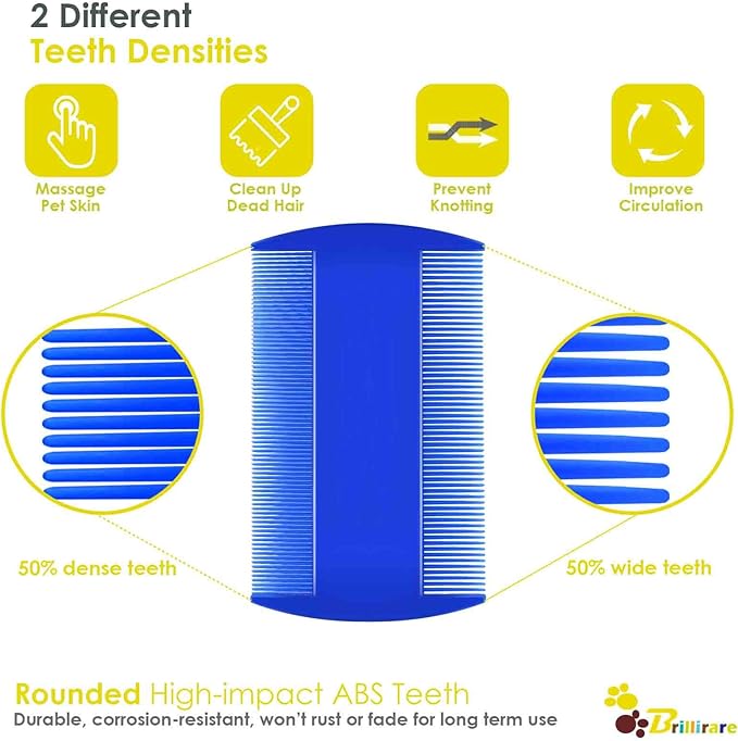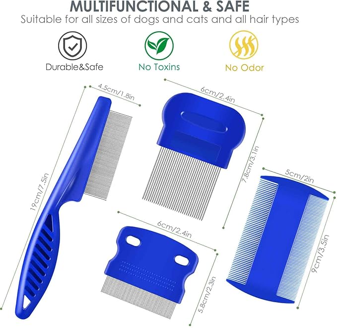 - THOUGHTFUL SET: Our pet grooming comb set includes 4 combs, 1 tooth comb, 1 double sides lice comb, 1 long-needle & 1 short-needle comb to meet different needs. Perfect for straightening out the knotted tangles hair, as well as finishing and fluffing