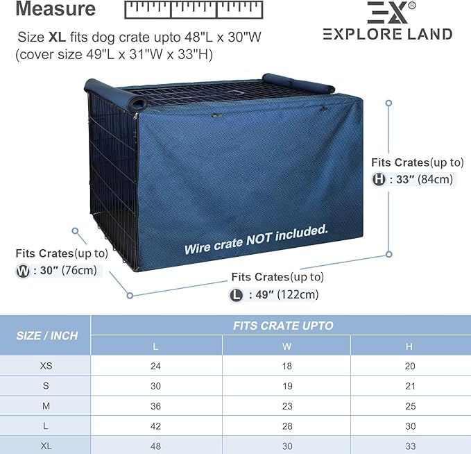 - Only Cover, without Crate - Dimension: 48 x 30 x 33 inches, universal fit for most brand 48-inch standard wire crate. Compatible with 1-door, 2-door, and 3-door wire dog crates with a top door. Zips on all four sides allow the left, right, front, and back panels to open.