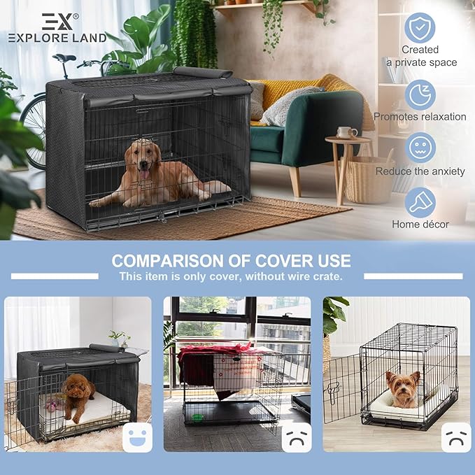 Explore Land Dog Crate Cover for 24 Inches Wire Cage, Heavy-Duty Lattice Pet Kennel Enclosure Compatible with 1 2 3 Doors Standard Metal Cage (Black)