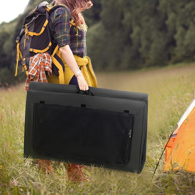 - The inclusion of three mesh doors in our portable dog crate ensures superior ventilation, offering your pets a clear view and minimizing anxiety. Additionally, you can now bid farewell to concerns about dog hairs scattering, as the mesh design effectively contains them.