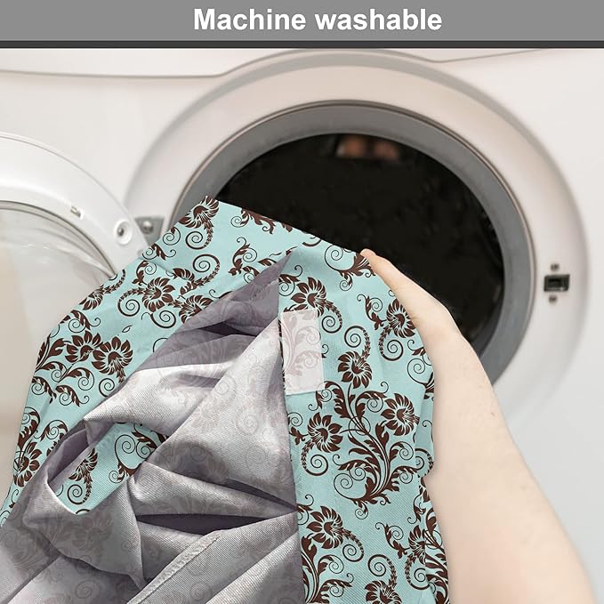 Ambesonne Art Nouveau Dog Crate Cover, Vintage Swirls Vibrant Foliage Damask Style Classic Renaissance, Easy to Use Pet Kennel Cover for Medium Large Dogs, 42 Inch, Seal Brown and Pale Blue