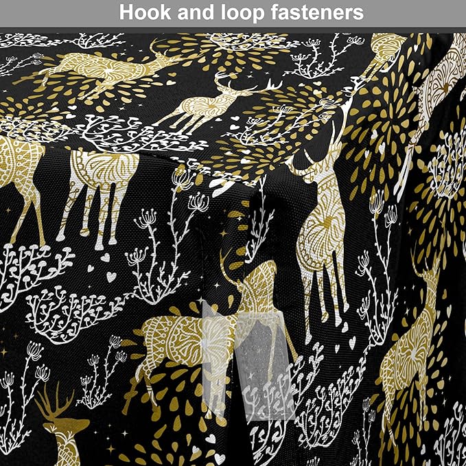 Ambesonne Christmas Dog Crate Cover, Nature Woodland and Deer Silhouettes with Oriental Ornaments Design, Easy to Use Pet Kennel Cover for Medium Large Dogs, 48 Inch, Yellow White Black