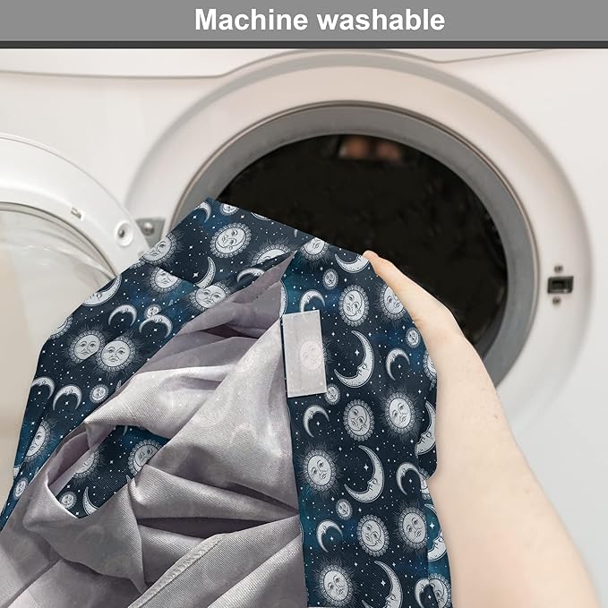 Ambesonne Sun and Moon Dog Crate Cover, Heavenly Bodies in Starry Night Sky Graphic Theme, Easy to Use Pet Kennel Cover for Medium Large Dogs, 48 Inch, Blue Grey