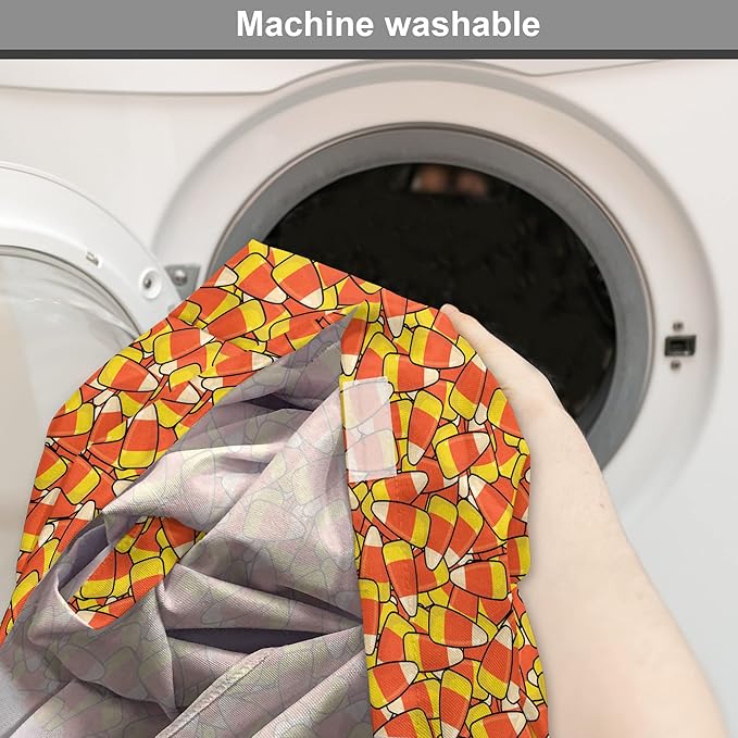 Lunarable Candy Corn Dog Crate Cover, Continuous Illustration of Cartoon Style Traditional Halloween Items, Easy to Use Pet Kennel Cover for Medium Large Dogs, 48 Inch, Vermilion Mustard